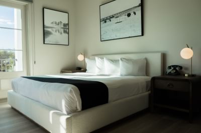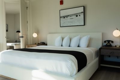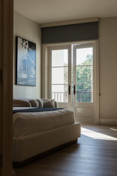 Suite King Bed Residential View, with a large bed, textured rug, and a desk with a chair at The White House Hotel